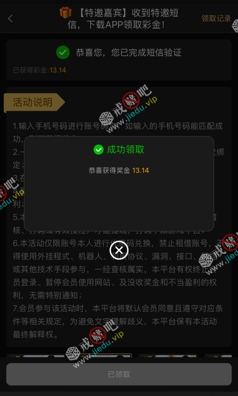 到账情况: 白嫖即可(勿充值)