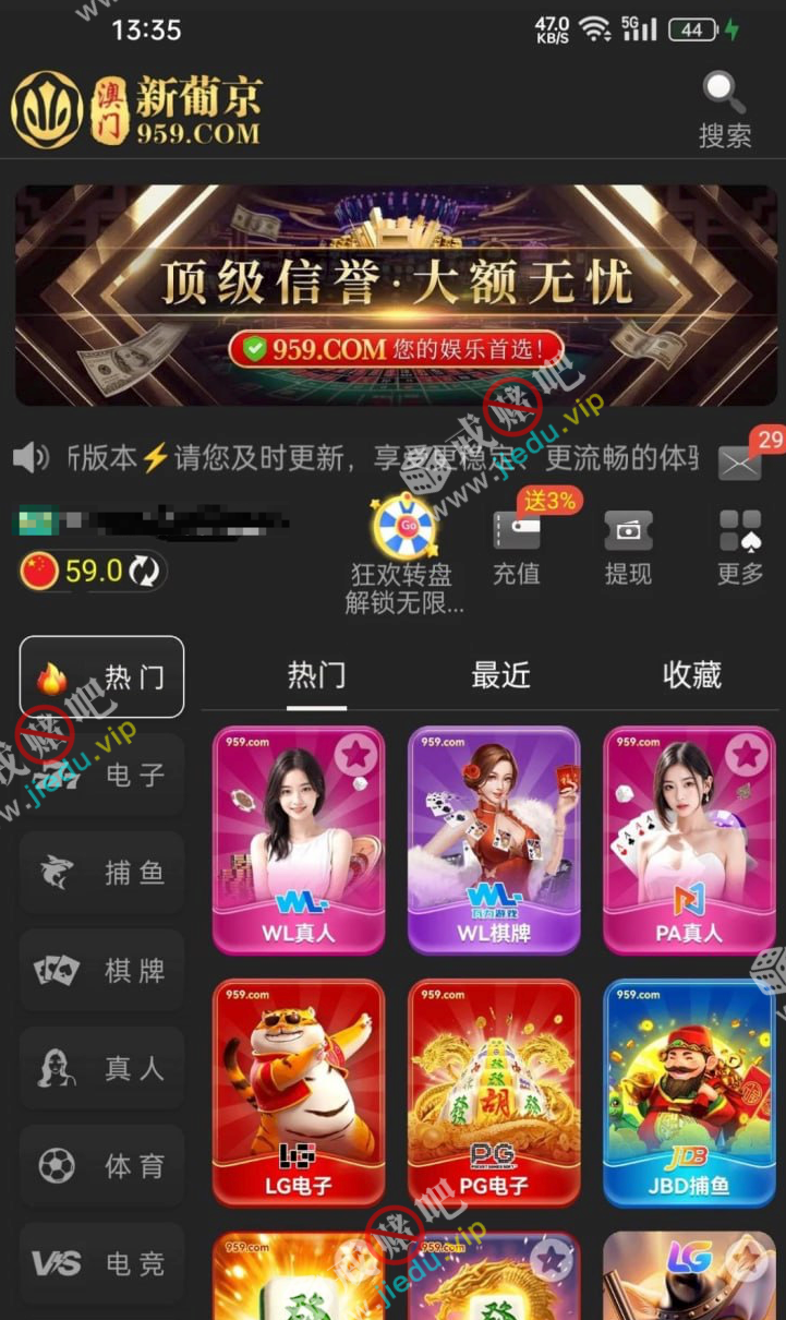 今天接到澳门新葡京客服打电话来说送59彩金,我就注册一个账号送了给我,可惜没打出来,大家可以找客服碰瓷彩金!