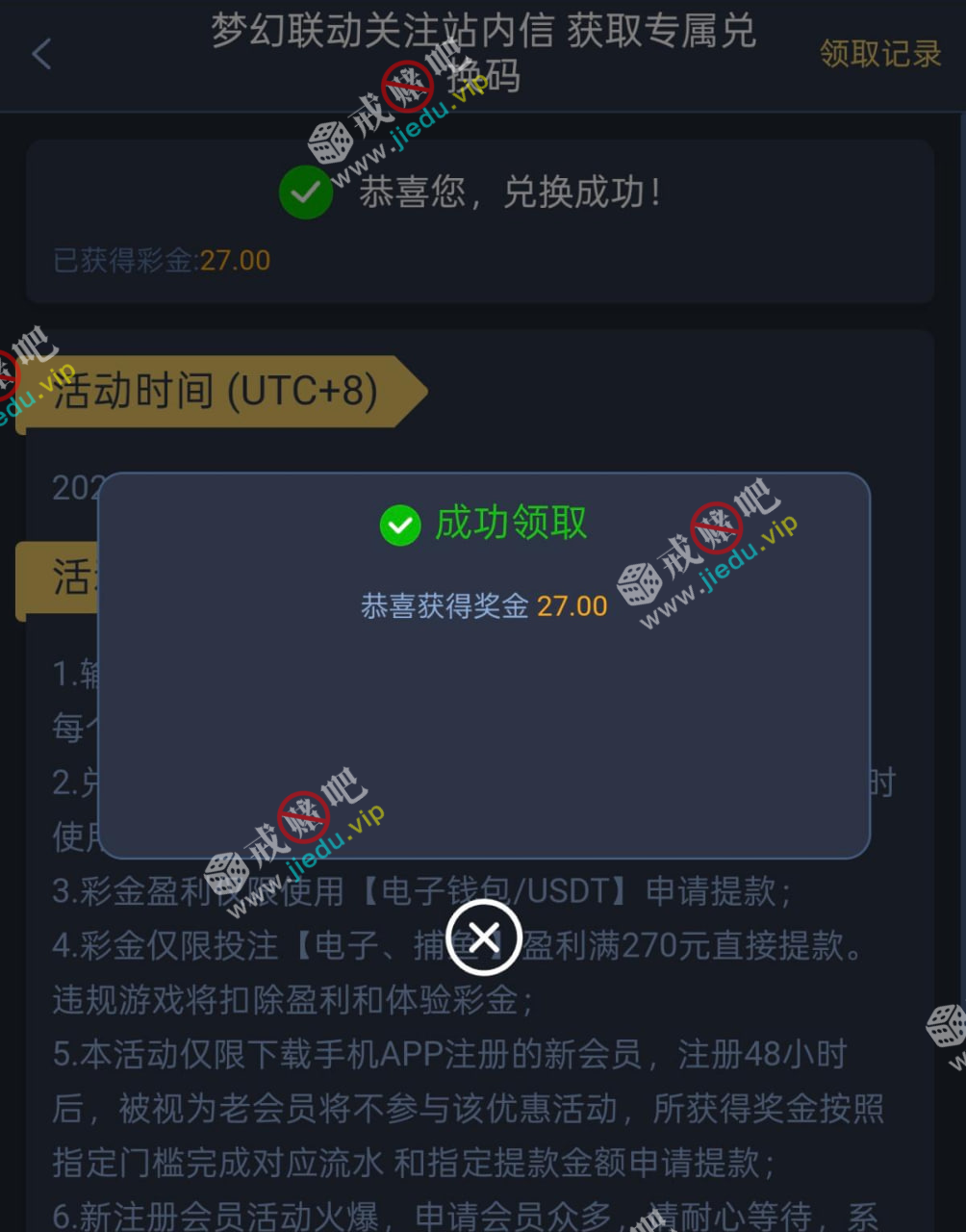 到账情况: 白嫖即可(勿充值)