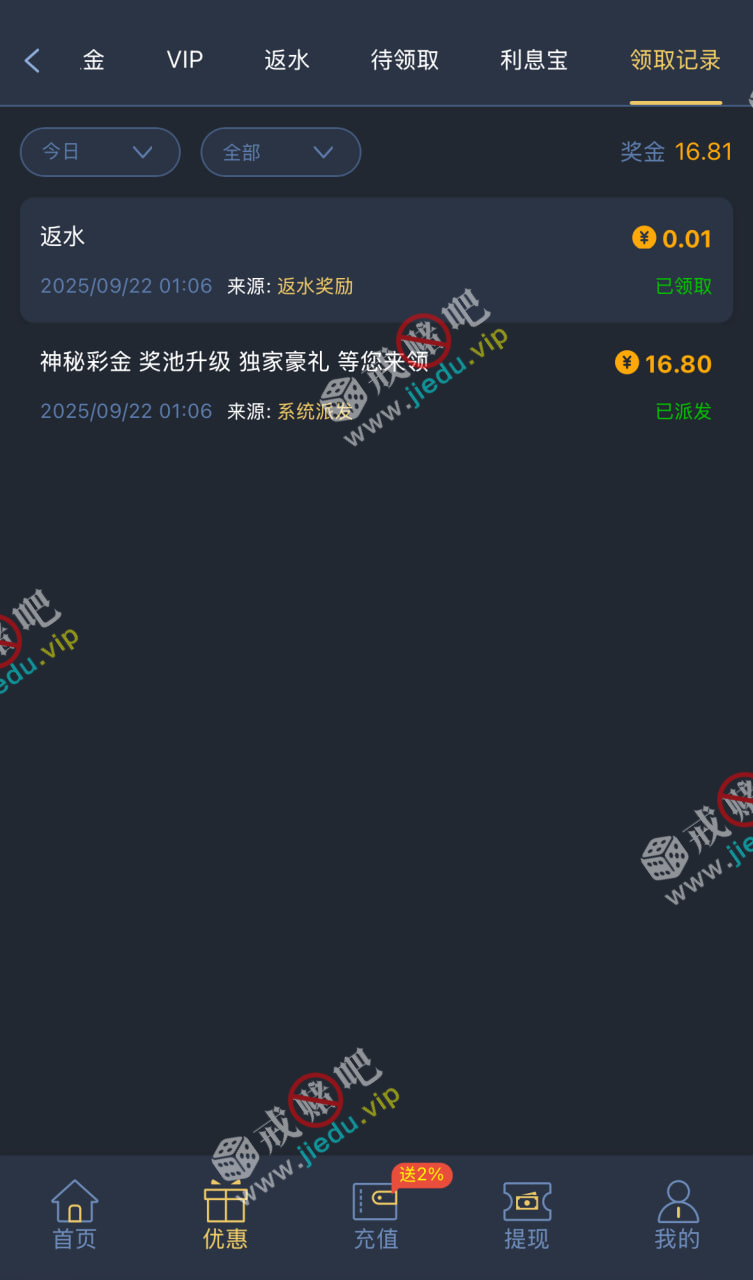 历史存款送神秘彩金,有充值过的兄弟们可以去看看。