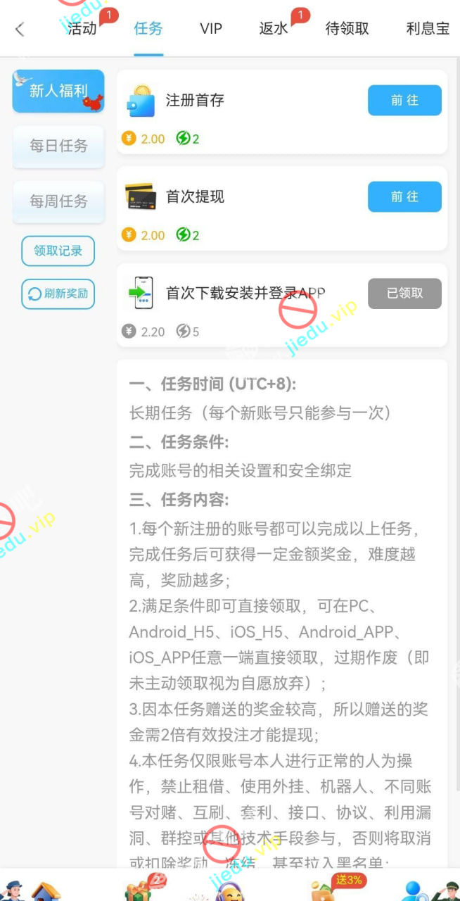 到账情况: 白嫖即可(勿充值)