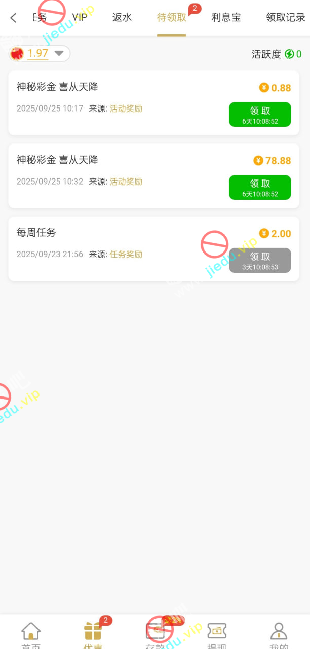 有的可以去看看神秘彩金,昨天登录就看到了。