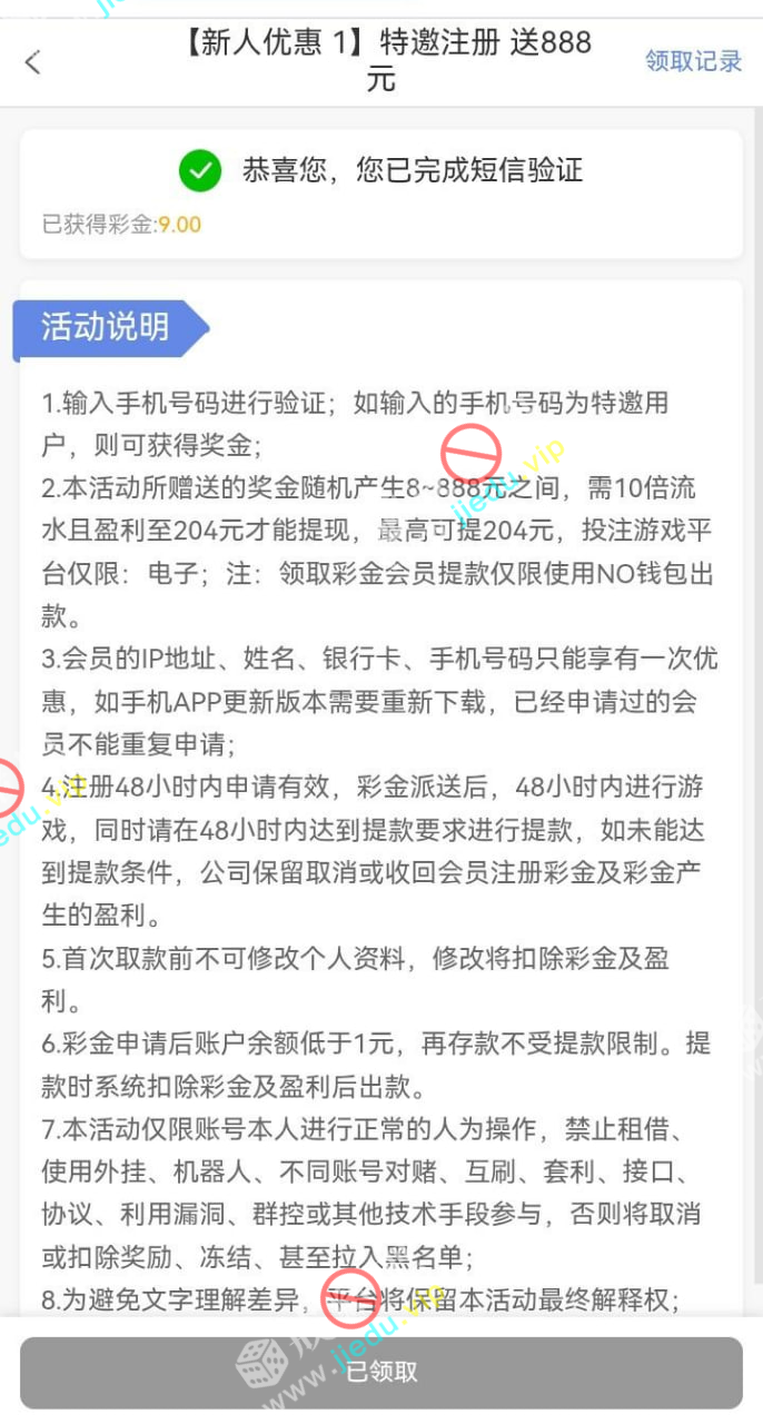 到账情况: 白嫖即可(勿充值)
