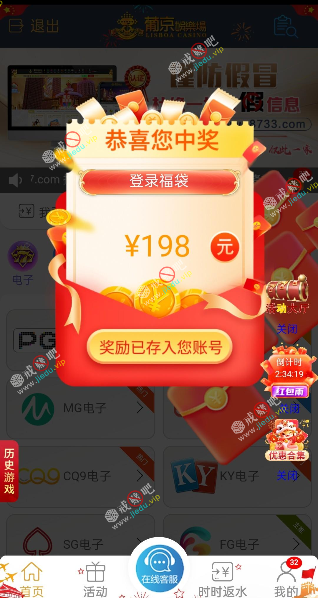 葡京送中秋福袋198彩金,有号的登录APP后查收福袋,有充过的去。