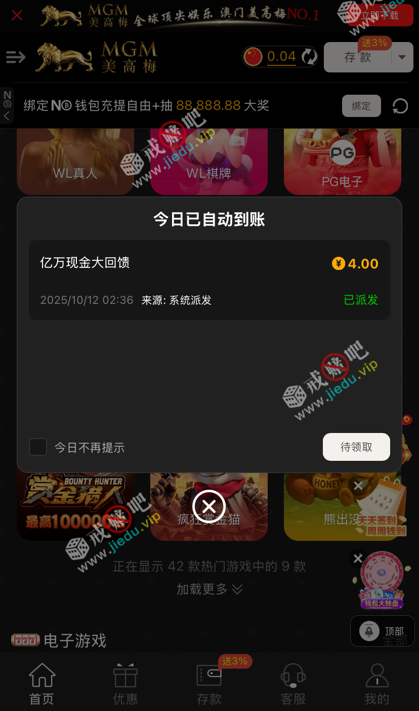 友情提示 : 别充值,白嫖不到就撤
