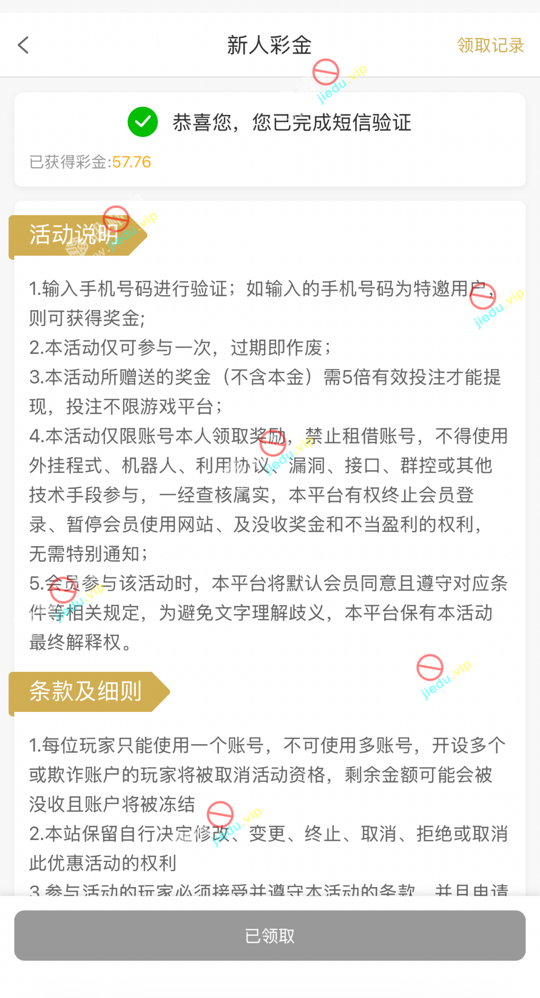 短信验证给了50多,没领过的去试试。