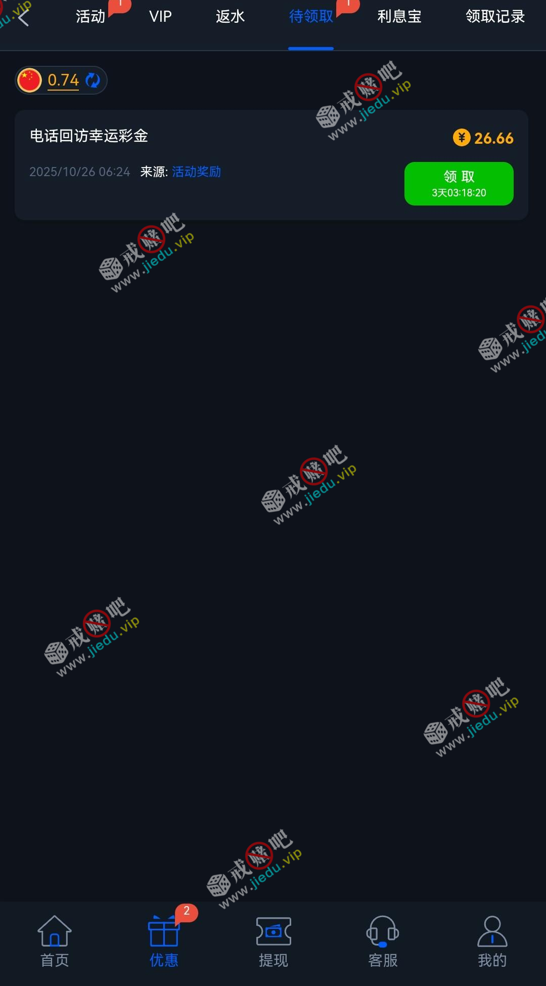 这个台充的号就不送回访彩金,不充值的号上去看了就给了回访彩金,建议老哥们有充过的号和没有充过的号两个都去碰碰。