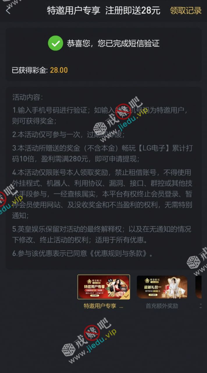 到账情况: 白嫖即可(勿充值)