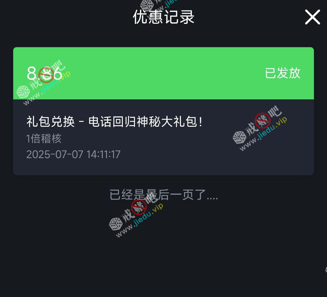 到账情况: 白嫖即可(勿充值)