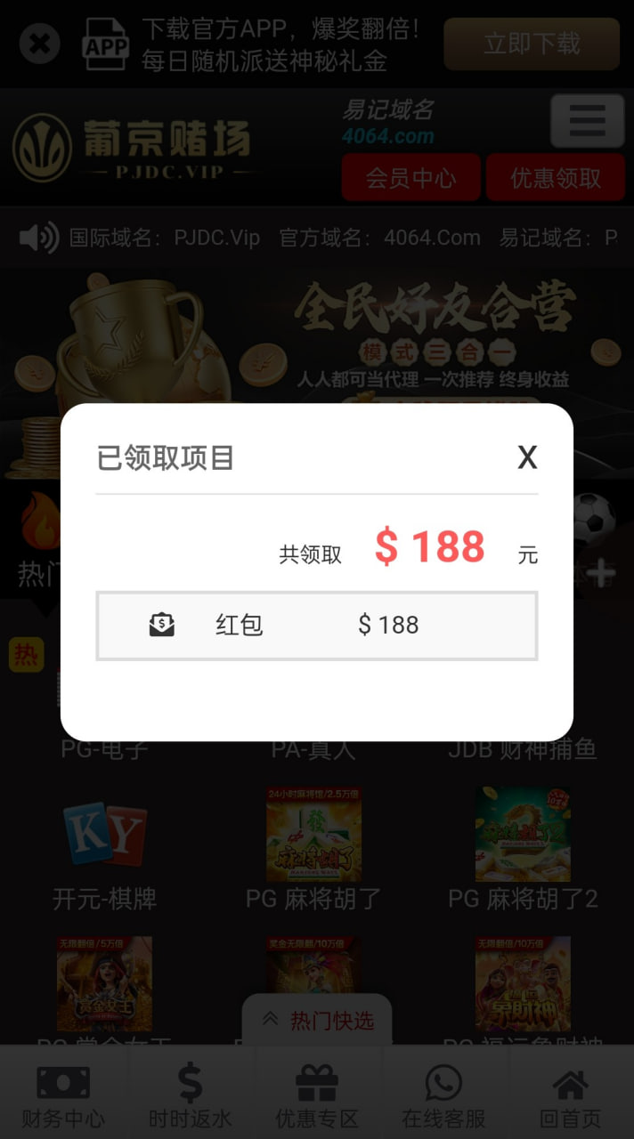 今天无聊上了好久没登录的之前干到V9的号发现有彩金可以领取,亲测电子没水后捕鱼过完流水就跑了,提现秒到亲测, 有号的可以试试,