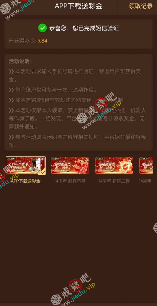 下载注册领取随机彩金,领到 9.84 ,没打出来,没碰到的可以去试试。