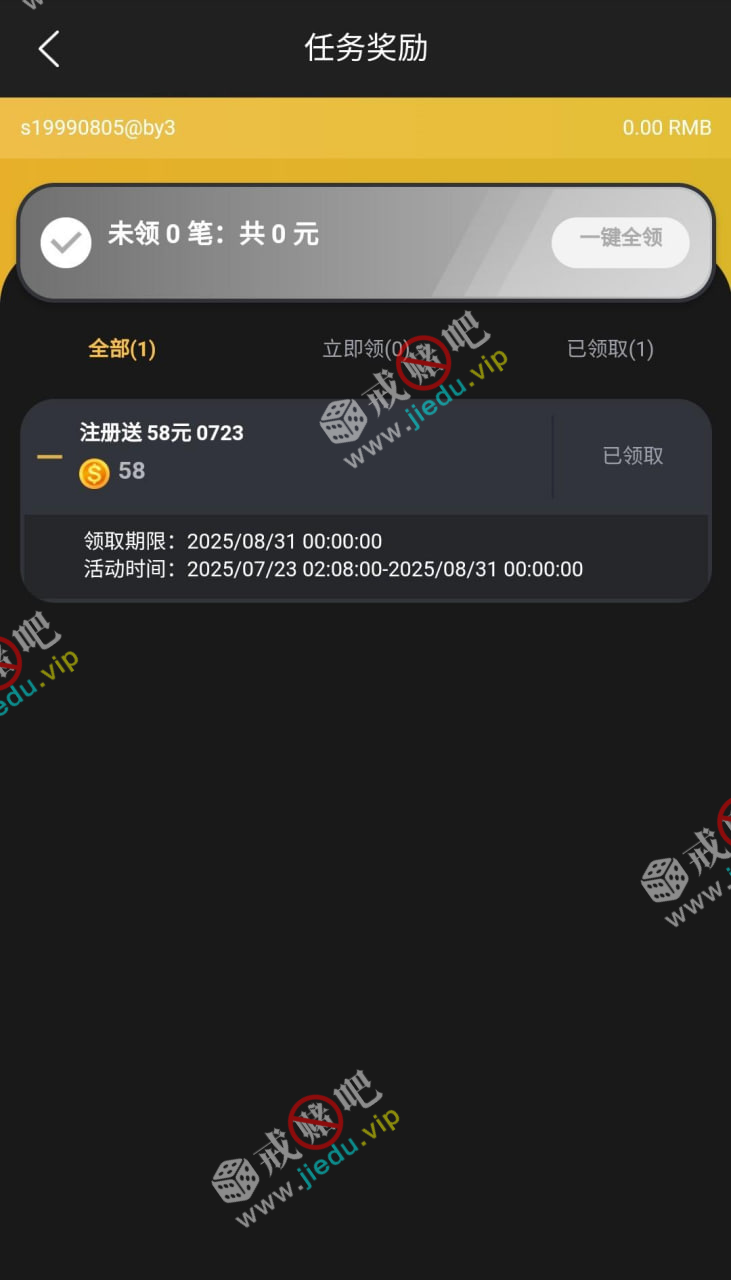 没收到短信的注册先去找客服碰碰,没碰到过几分优惠里看看有没有自动到 58,没有就没有,有就是特邀。