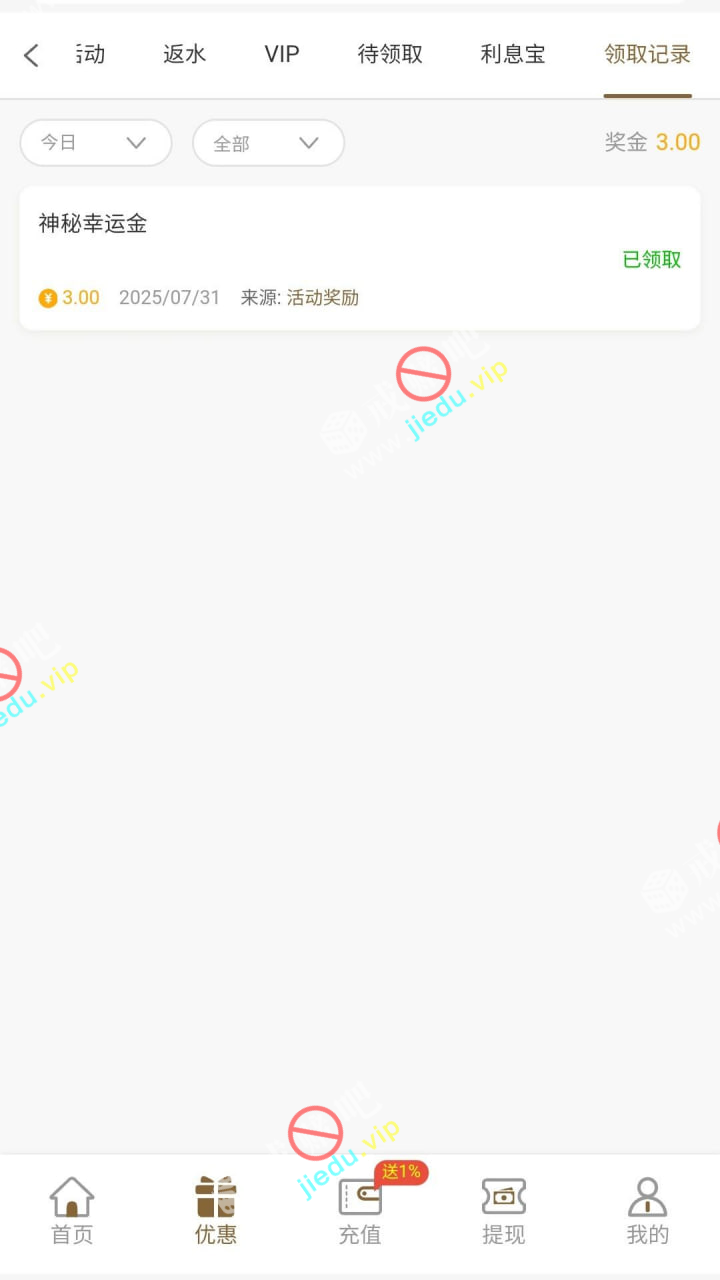 赌神就上号看看吧,上号就见了 3 块的神秘彩金。