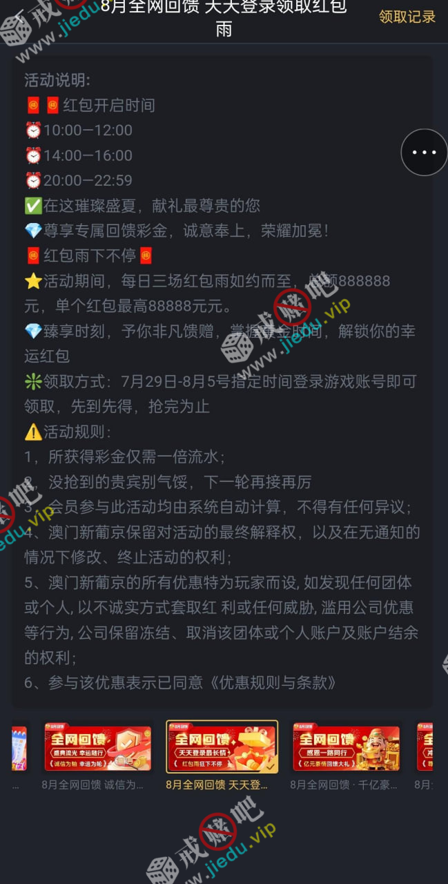 有历史充值的,8月5号之前,每天三次免费抢红包,三次加起来有20块左右。