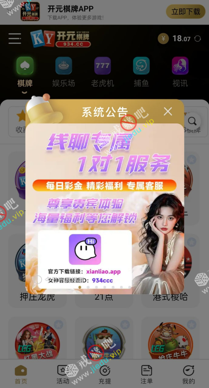登录就送了 18,下载图片里的那个线聊,找客服说电话彩金。