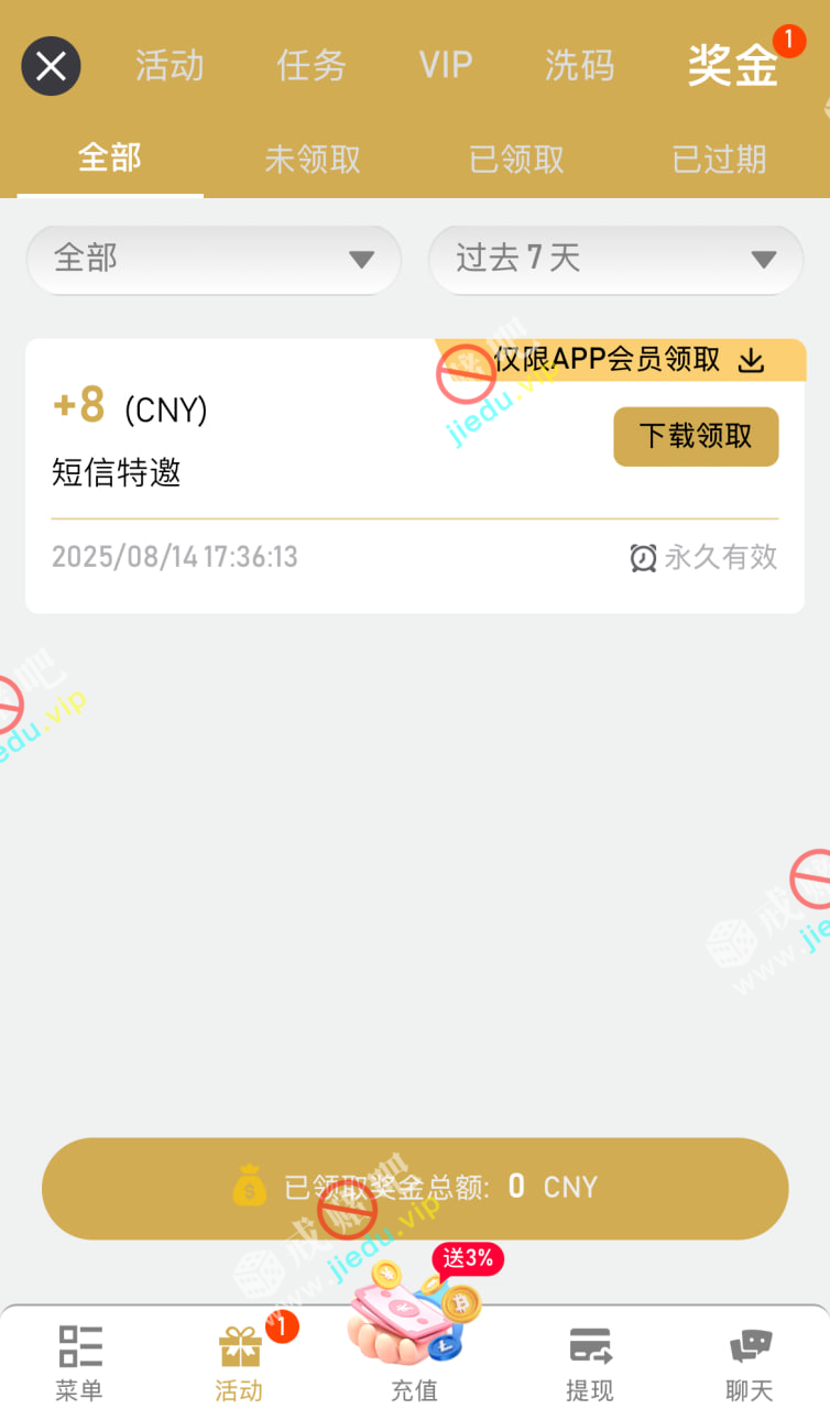 手机号注册自动弹出来验证彩金 验证码领取就行了。