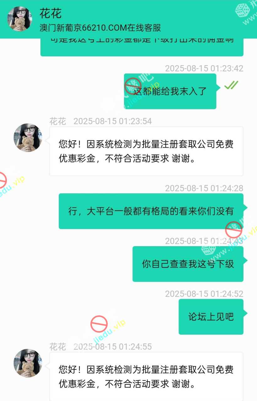 一百多个下级打的佣金拿去玩了一会感觉还行,说我批量注册套彩,提现的时候直接黑了。