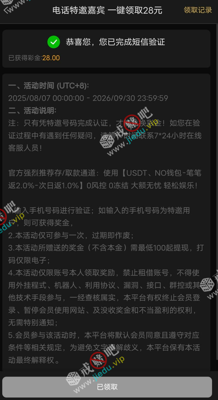 送28 刚刚接到电话验证手机号是特邀秒28,你们也可以输入手机号试试,因为我朋友试了,他也领到了。