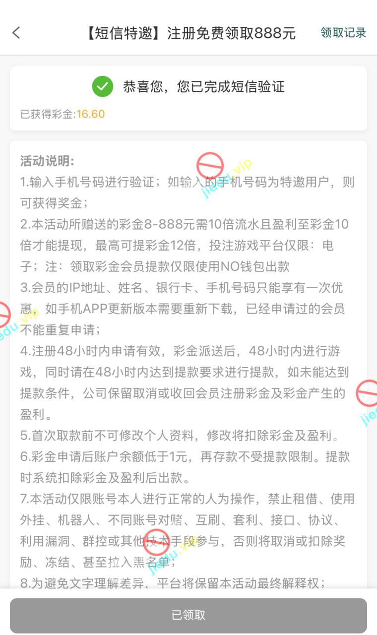 到账情况: 白嫖即可(勿充值)