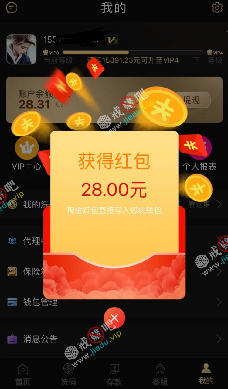 回归彩金,有账号的去看看,金额是随机的,我朋友领到 18,我是 28。
