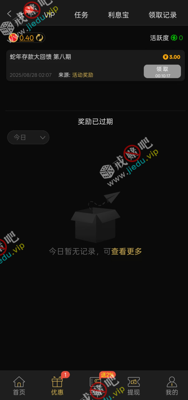 蛇年存款回馈,存款过的兄弟们都可以去看看碰碰,金额是随机的,我身材矮胖,只领到 3 块。
