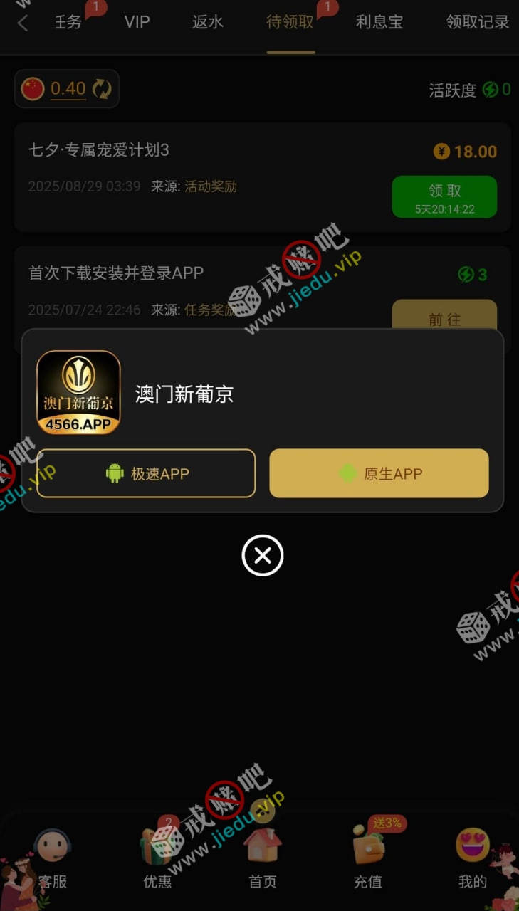 澳门新葡京4566,七夕节彩金登录领取18,充值玩过的都应该有。