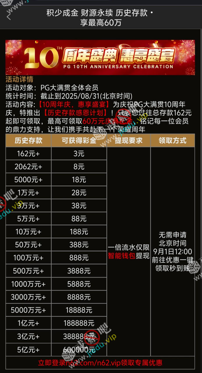 【PG大满贯N62】—✅—历史存款大回馈