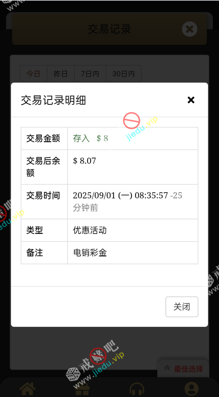 接着电话几秒 网卡挂电话了,登陆去看看就有彩金,有号的兄弟们看看