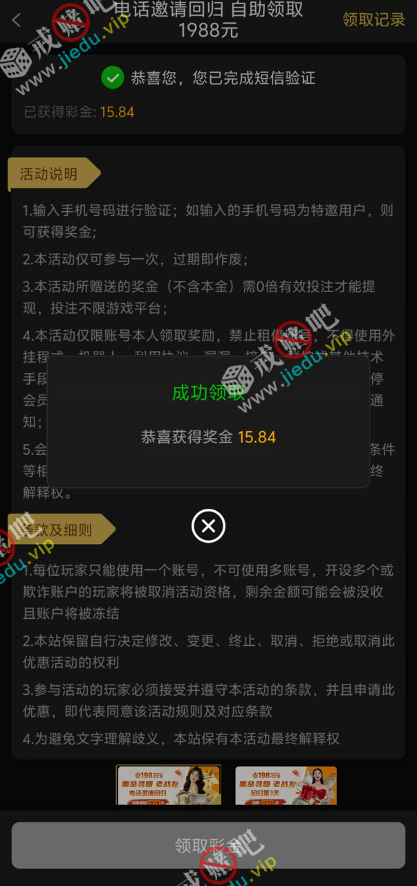 到账情况: 白嫖即可(勿充值)