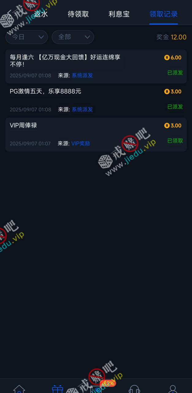 有注册后充值娱乐过的哥们都上号看看,领到了多少回馈彩金,我是 6 块。