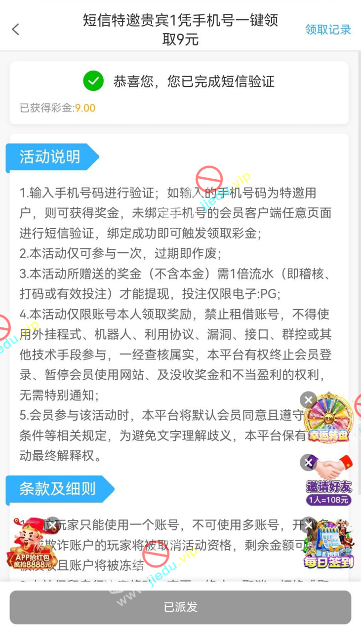到账情况: 白嫖即可(勿充值)