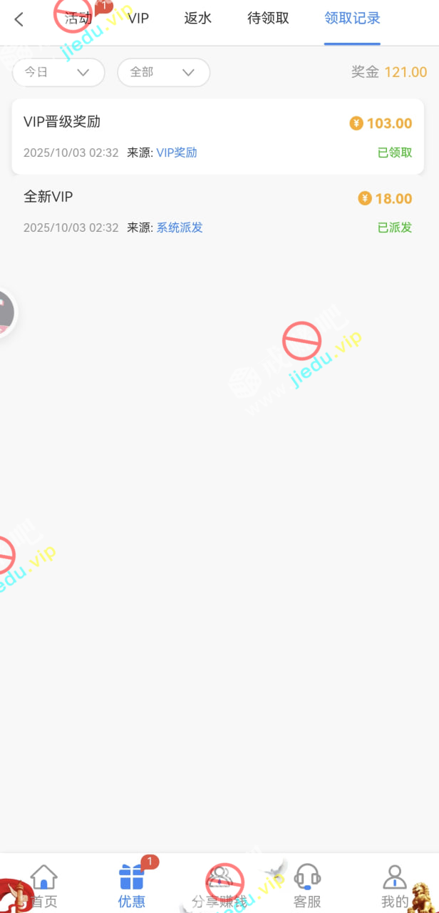 VIP彩金模板升级了,可以重新领取等级彩金,有充值还能领取周彩金。
