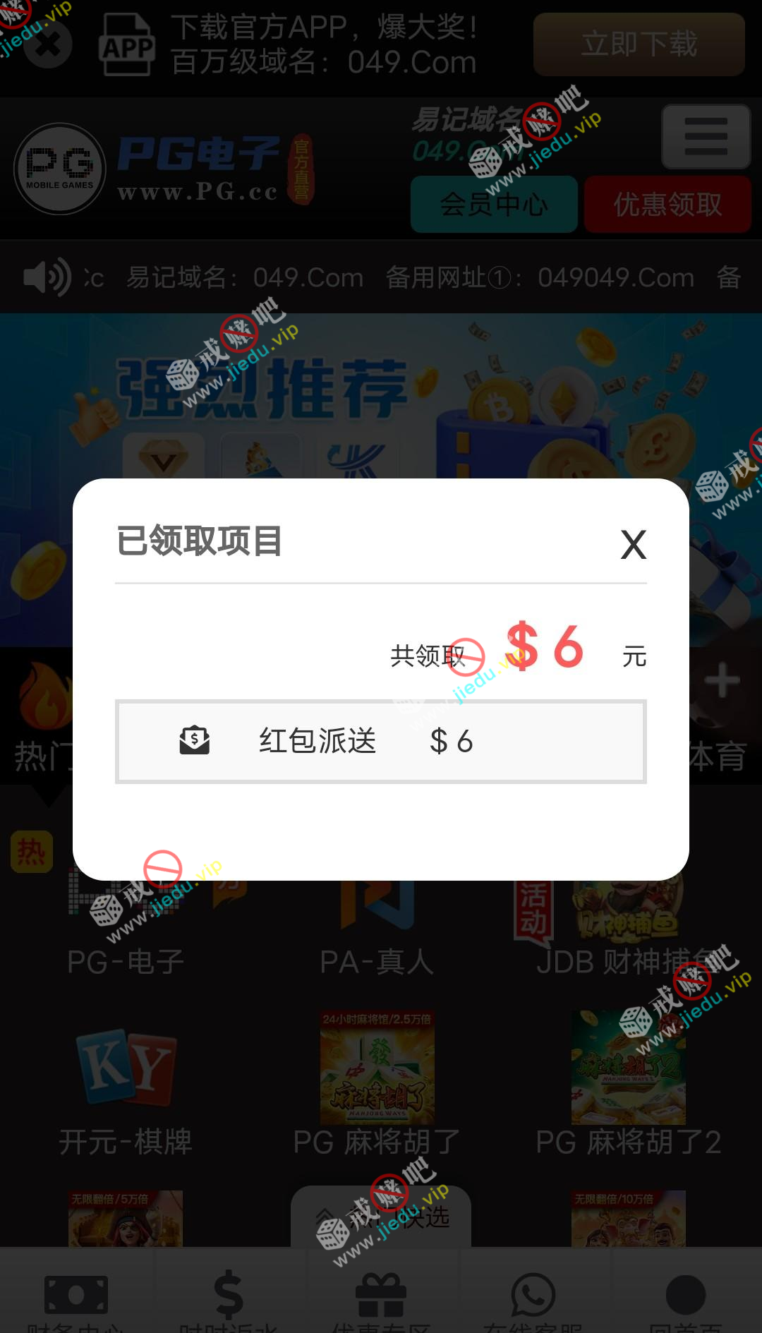 去看看下我领到了 6 块,吃了 200,打PG有水的。