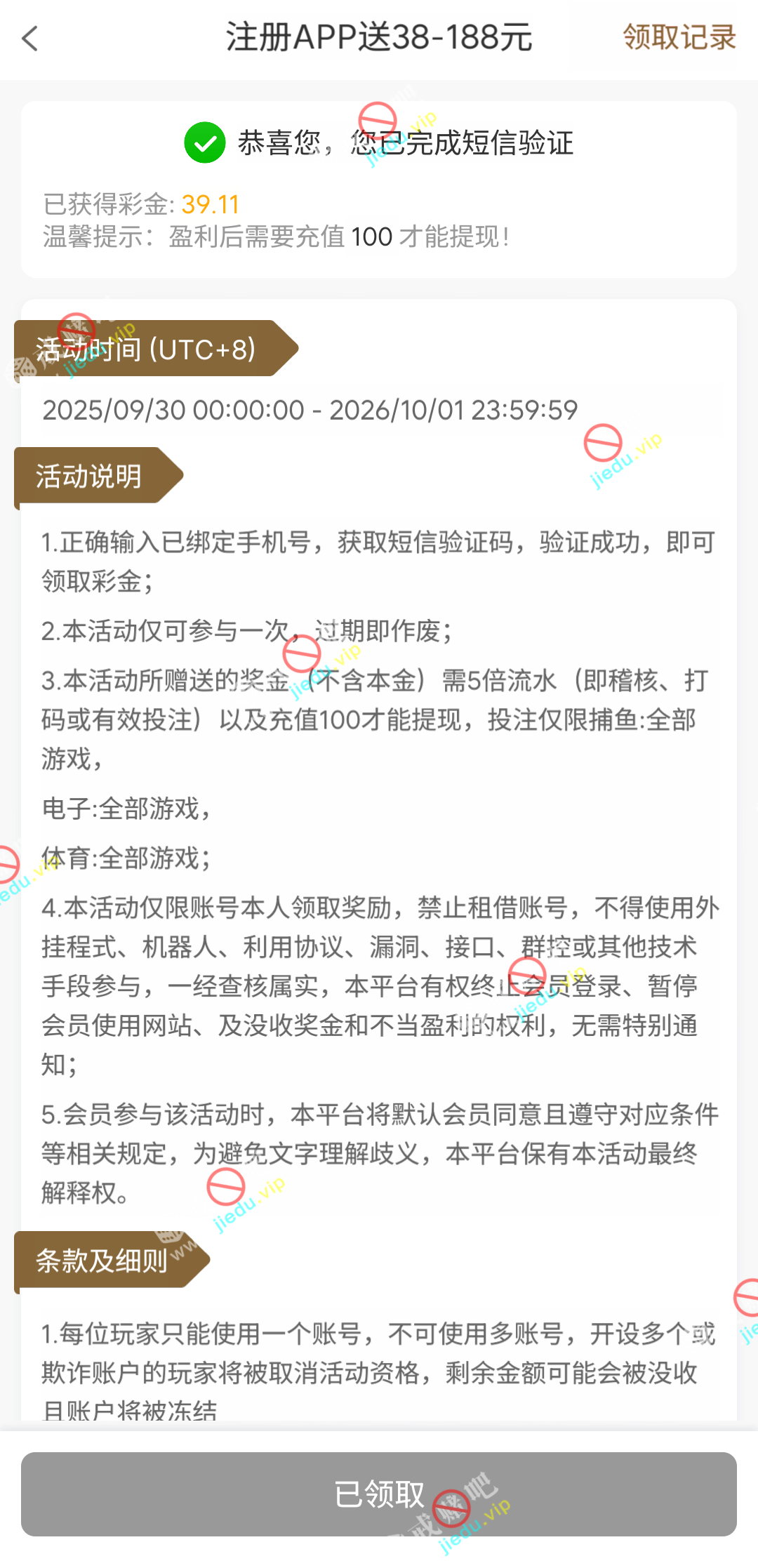 短信特邀最低38,提现要充值够100,介意的别去,我是先充了50领了39打麻将打到1200提现。
