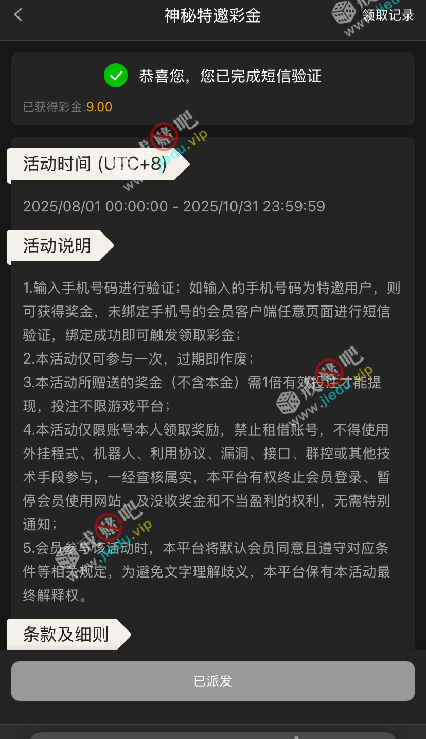 到账情况: 白嫖即可(勿充值)
