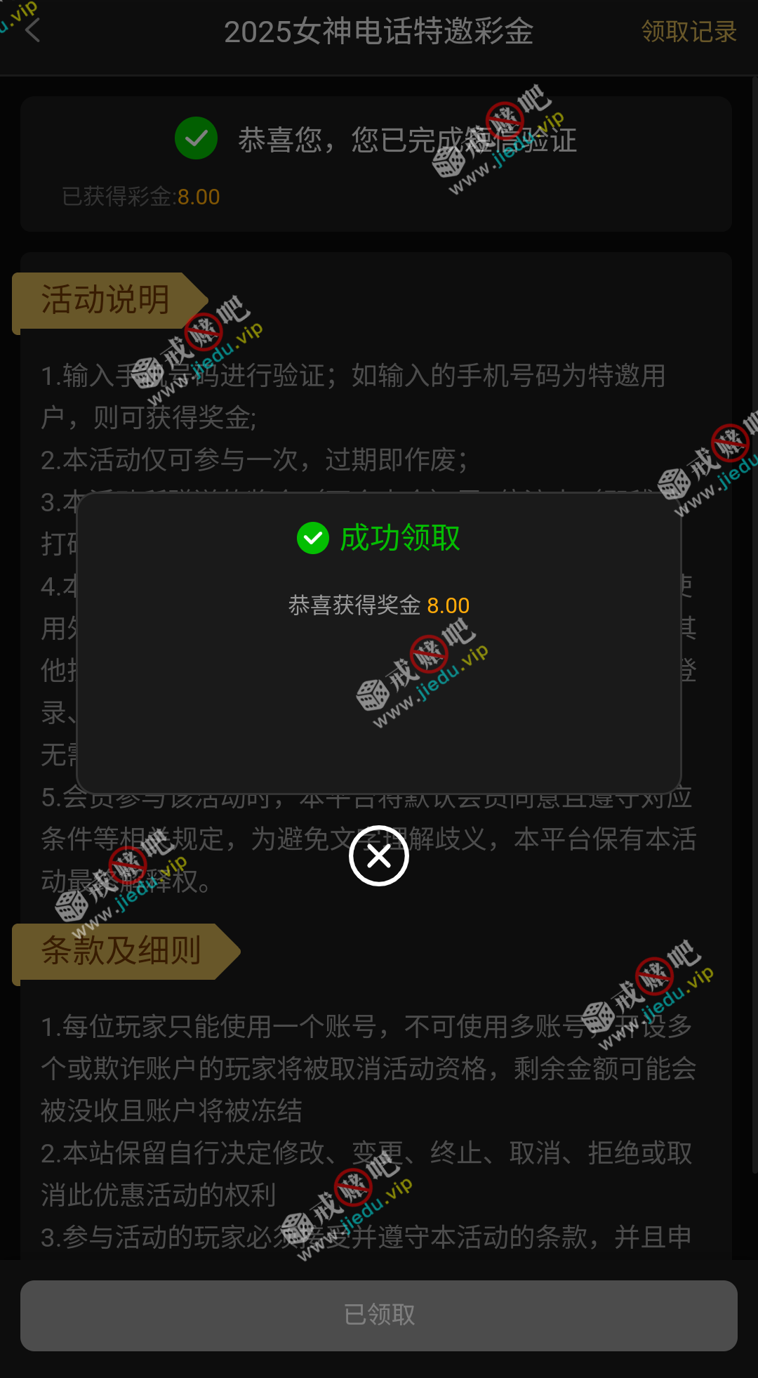 到账情况: 白嫖即可(勿充值)