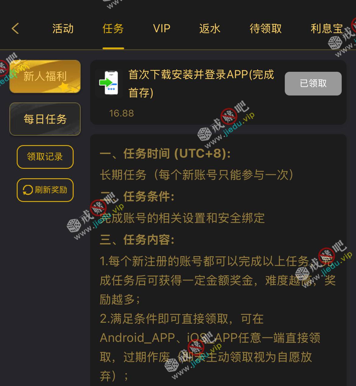 到账情况: 白嫖即可(勿充值)