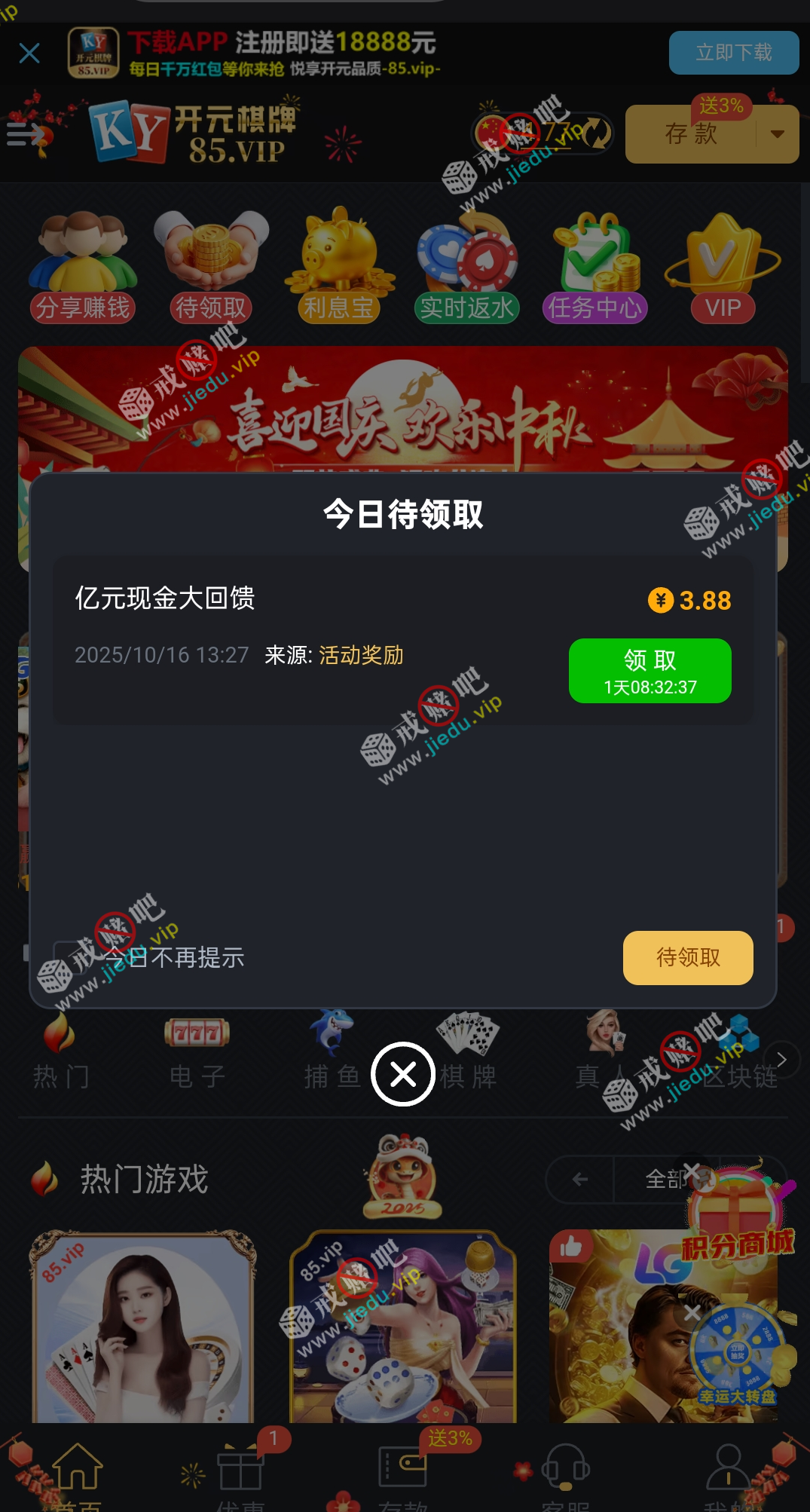 回馈彩金3.88老用户去。
