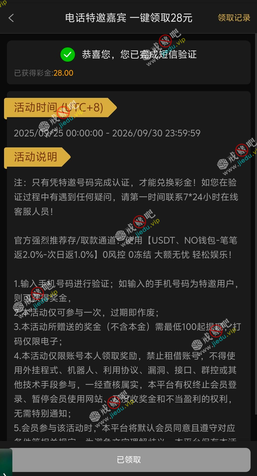 到账情况: 白嫖即可(勿充值)