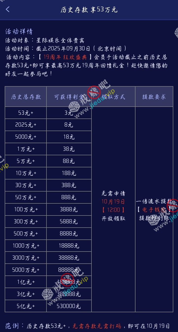 053星际娱乐有周年历史存款彩金,中午12点领。