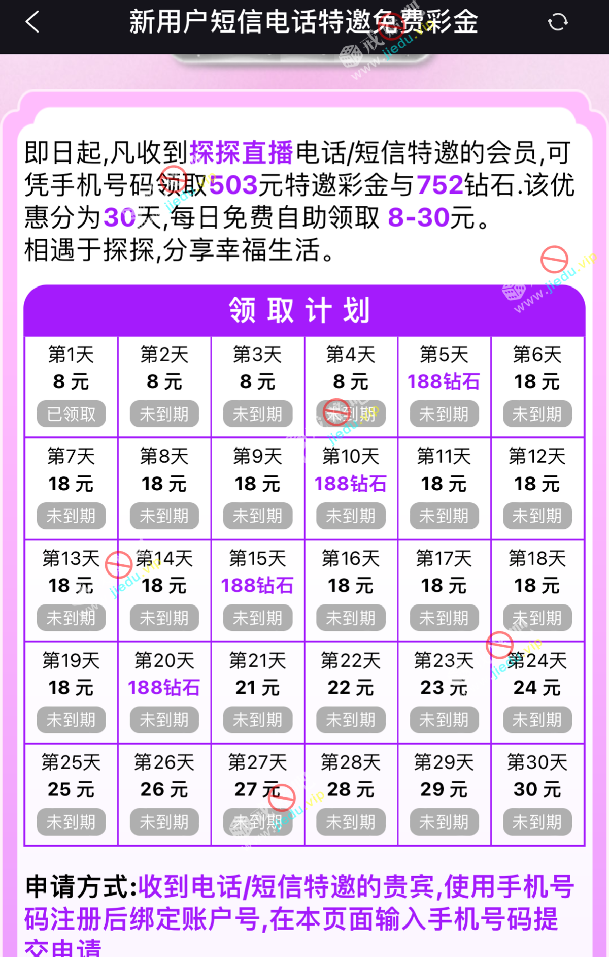 每天领8可以领30天 优惠里面输入手机号领取红包。
