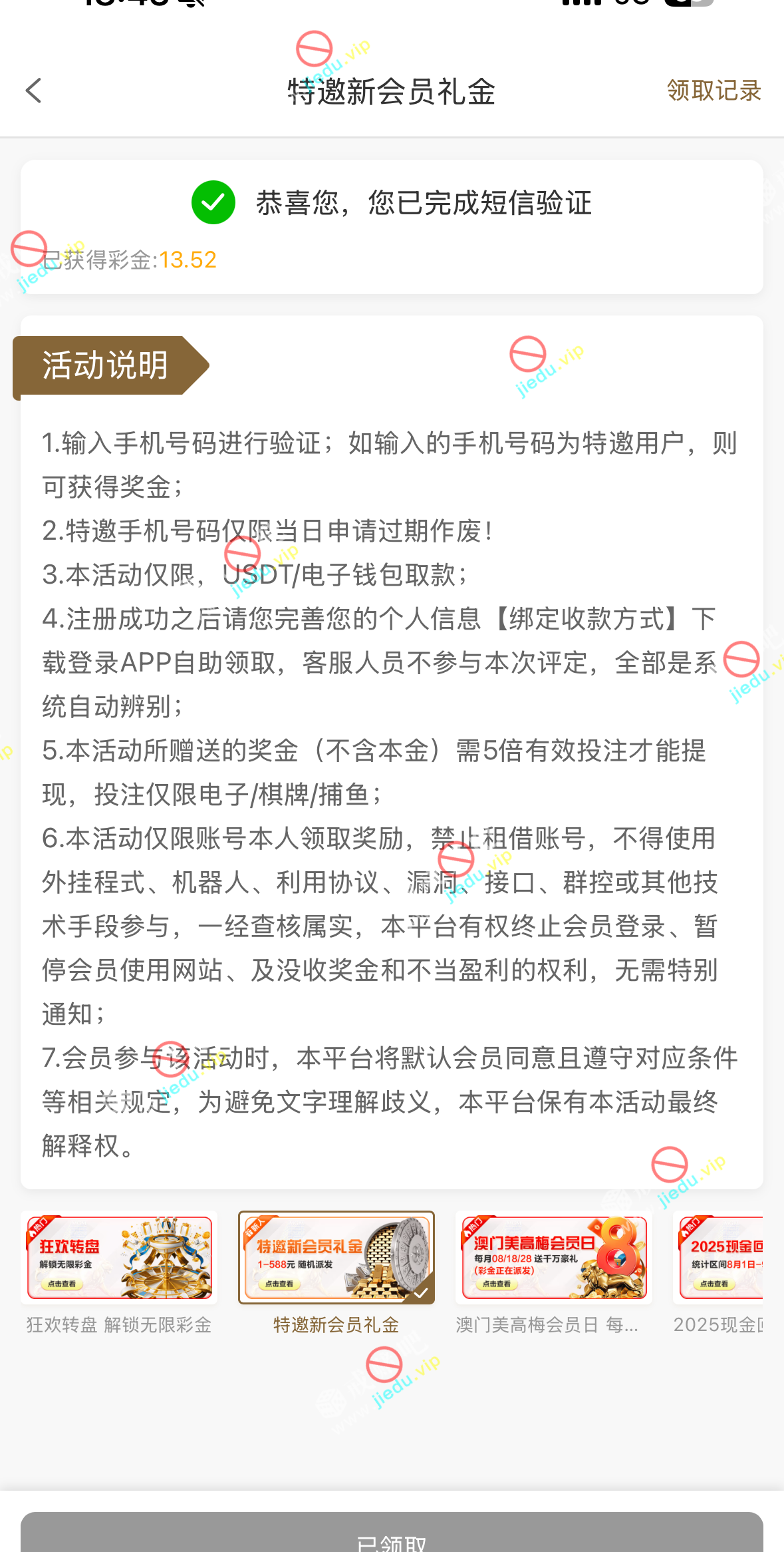 到账情况: 白嫖即可(勿充值)