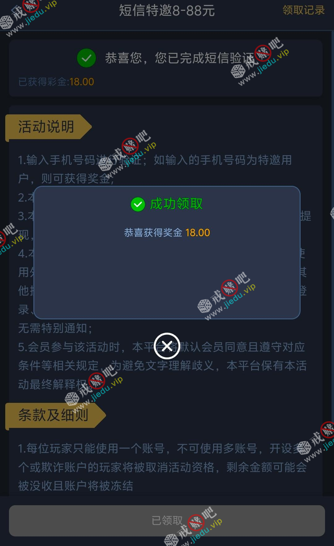 到账情况: 白嫖即可(勿充值)