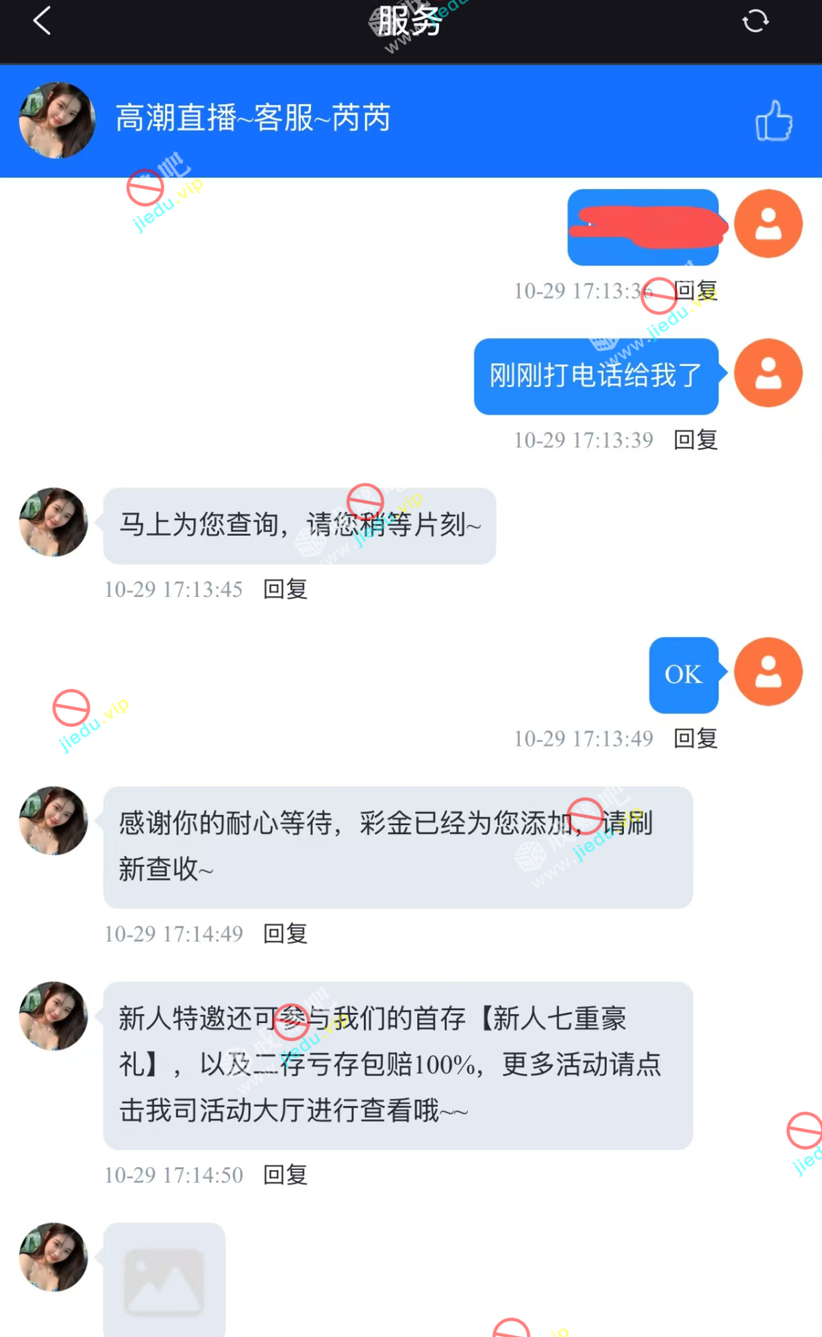 客服打电话过来的,不是那个自助申请的彩金,是回访彩金。